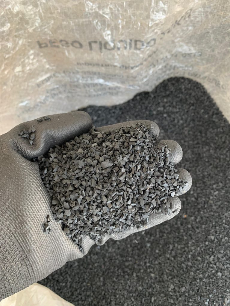 A borracha granulada é um material produzido a partir da reciclagem de aparas de borracha inservíveis, sendo amplamente utilizado como enchimento em campos de grama sintética. Sua principal função é proporcionar amortecimento, conforto e durabilidade ao gramado artificial, garantindo melhor desempenho e segurança para os jogadores.